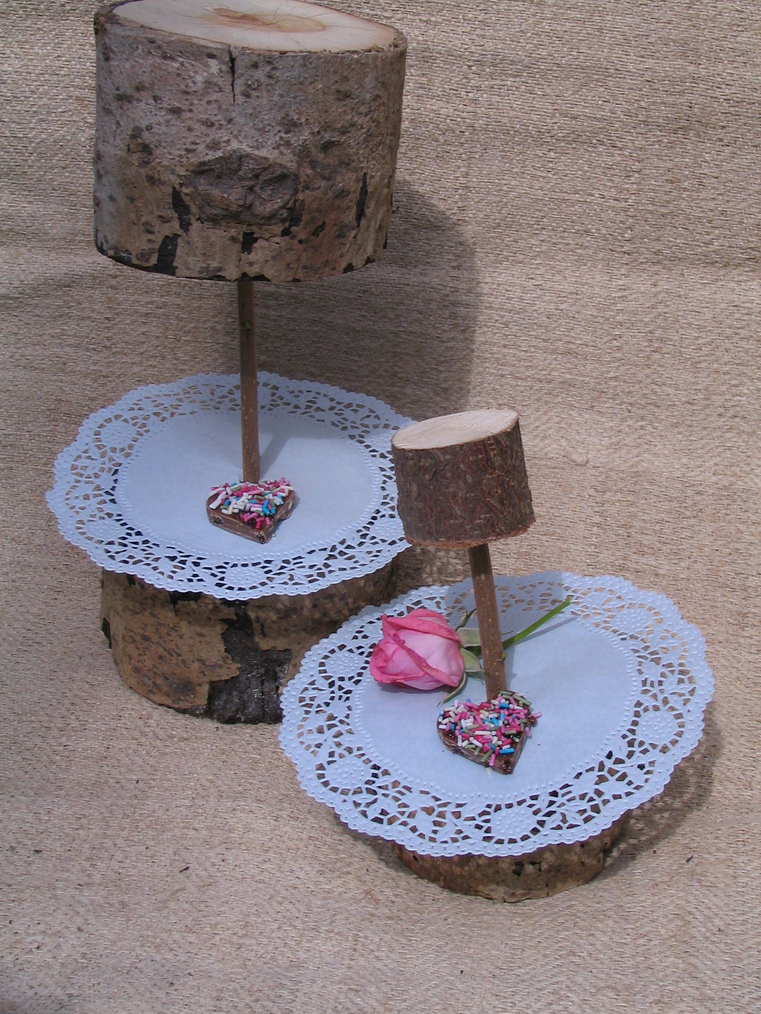 Fahasábok kifúrva, egymásra rakva, tortapapír az alsó szinthez illesztve és kész!